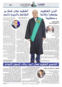 والشهداء الأبرار هم المصابيح المضيئة المشعة التي تنير دروب الأمم الحرة نحو التحرير من كابوس الاحتلال والاضطهاد والاستعمار والبؤس بجميع ألوانه ومشتقاته ، بسم الله الله الرحمن الرحيم. [ (168) وَلَا تَحْسَبَنَّ الَّذِينَ قُتِلُوا فِي سَبِيلِ اللَّهِ أَمْوَاتًا ۚ بَلْ أَحْيَاءٌ عِندَ رَبِّهِمْ يُرْزَقُونَ . ] صدق الله العظيم.