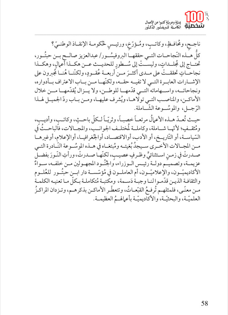 الحديث عن أعمال دولة رئيس الوزراء الكاملة، البروفيسُور / عبد العزيز صالح بن حبتُور، التي صدرتْ مُؤخراً عن مُؤسّسة دار ابن حبتُور للعُلوم والثقافة والتوثيق الخيريّة في عشرين مُجلِّداً من القطع الكبير، هو حديث ذو شُجونٍ؛ كونُه حديثاً عن السّياسة، وحديثاً عن الأدب والاقتصاد، وحديثاً عن السّياحة والتّاريخ وجُغرافيّة الإنسان والمكان، وهو في ذات الوقت حديث عنٍ مكتبةٍ علميّةٍ، وأدبيّةٍ مُتكاملةٍ تُمثل رافداً كبيراً ومُهماً للمكتبة اليمنيّة، والعربيّة، بل ورافداً مُهمّاً للمكتبة العالميّة، والباحثين، والمُهتمّين بالشّأن اليمنيّ والعربيّ.