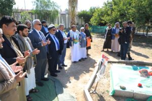 وخلال الزيارة قرأ عضو السياسي الأعلى ومعه محافظ حضرموت لقمان باراس، ووزير الشئون الإجتماعية السابق عبيد بن ضبيع، الفاتحة على أرواحهم وكافة شهداء الوطن الذين ارتقوا طيلة سنوات المواجهة البطولية ضد تحالف العدوان الأمريكي السعودي الإماراتي والعدو الصهيوني.. مبتهلين إلى المولى عز وجل أن يجزيهم عن وطنهم وأمتهم خير الجزاء وأن ينزلهم منزلة الشهداء في الفردوس الأعلى.